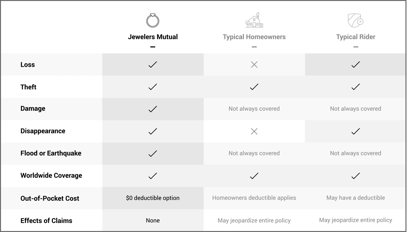 Jewelry is typically covered under renters and homeowners insurance policies, however, that coverage is normally not enough to cover the full replacement cost. Even a jewelry-specific rider added to your homeowners policy has its limits.