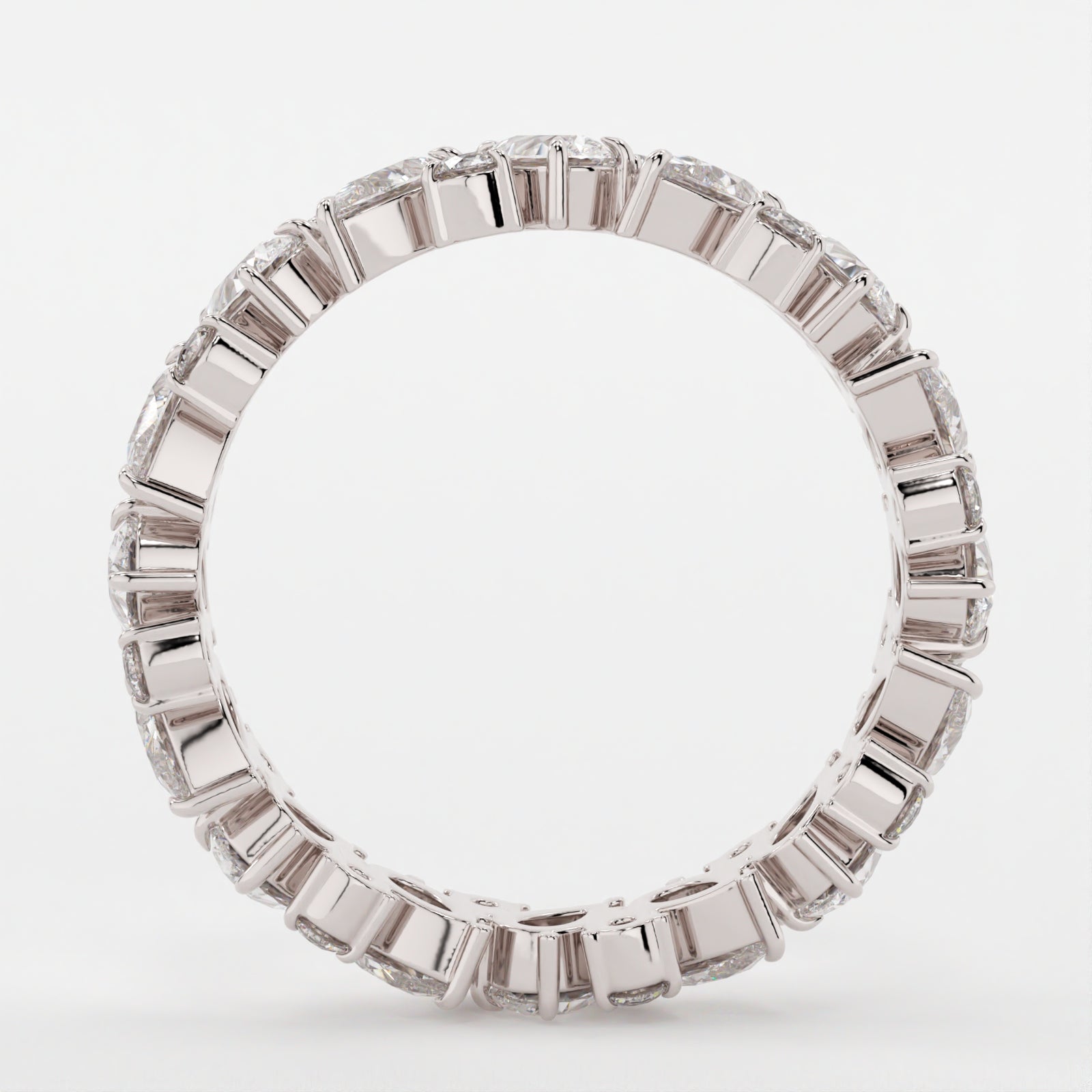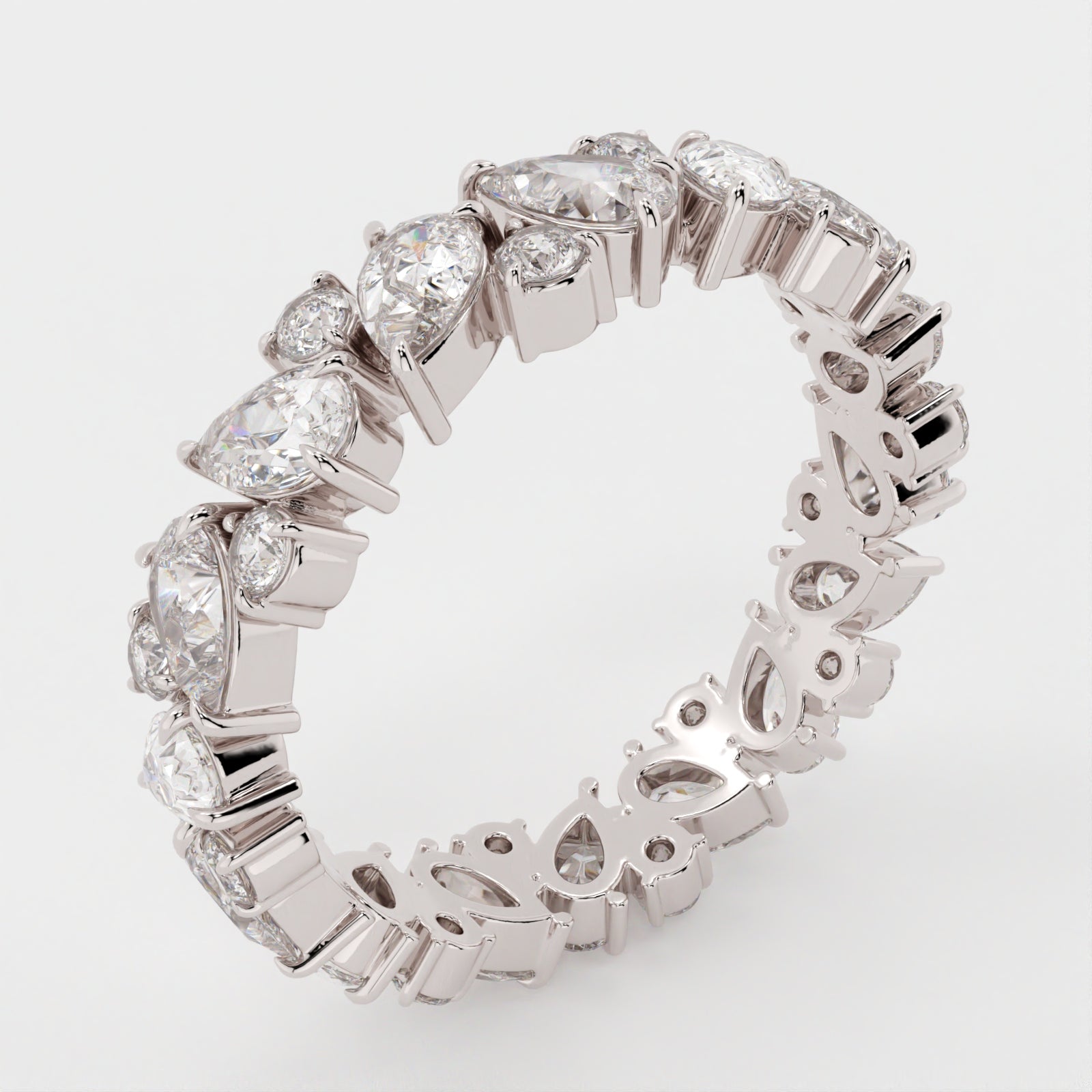 The Gemma band combines 4x2.5mm pear cut moissanites with round brilliants in our modern white color grade for a clustered pavé design. The mix of crushed ice hybrid facets and brilliant facets creates soft sparkle with added dimension, while the clustered layout gives the band a delicate, organic flow. It’s a versatile piece that stacks beautifully or stands alone with subtle character. Please note, full eternity bands cannot be resized.