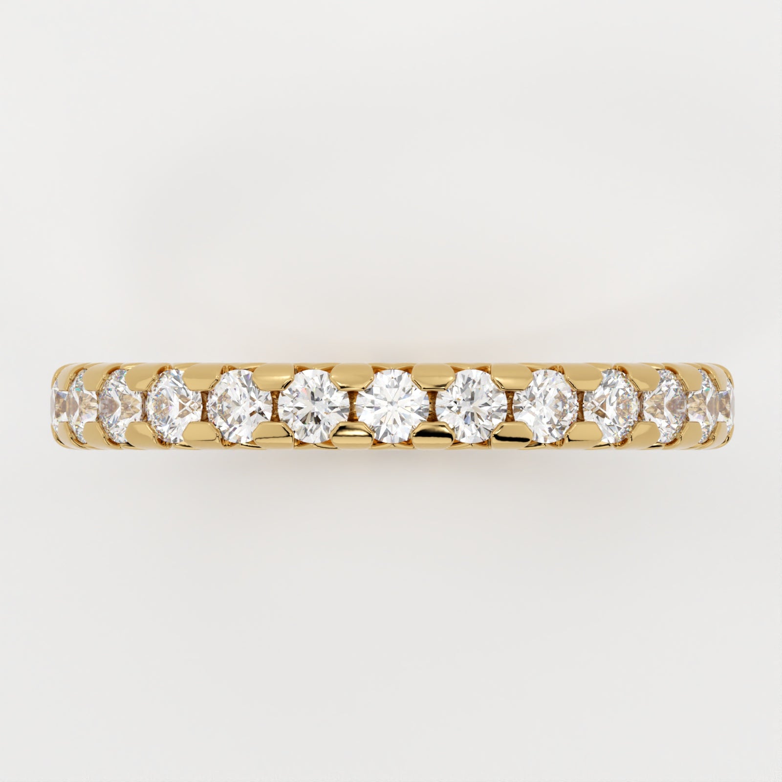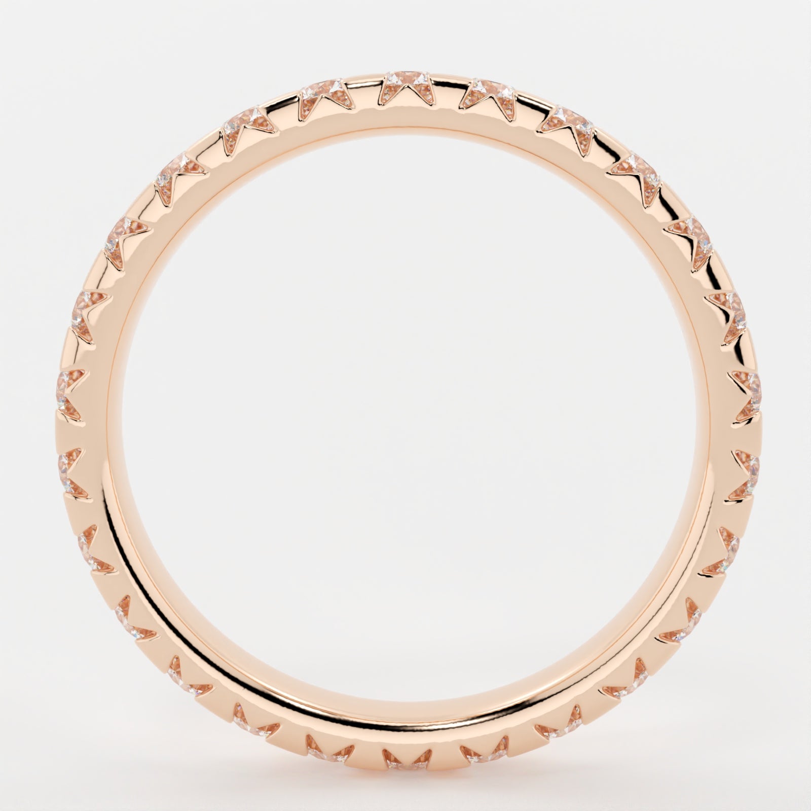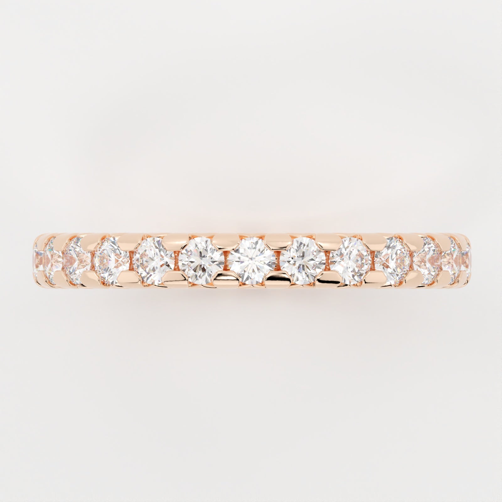 Our Romy band is a perfect match to our Romy ring. It measures 2.2mm wide and is set with round brilliant moissanites in our modern white color grade. Perfect as a stacker or a standalone piece, it’s a timeless choice with subtle detail. Please note, full eternity bands cannot be resized.